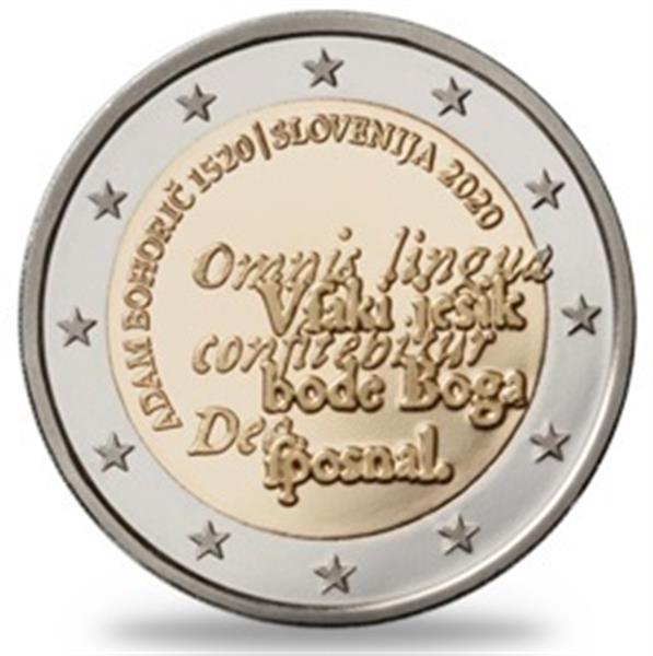Slovenië heeft een 2 Euro uitgegeven in 2020 met als thema: Adam Bohoric. Adam Bohoric was een protestantse docent en ontwikkelde de Sloveense grammatica. Hij werd geboren in 1520 in Brestanica en studeerde Letterkunde en Muziek in de Duitse stad Wittenberg. Zijn passie, zingen, deed hij wekelijks in de kerk. Tussen 1551 en 1563 had hij een particuliere school, waar hij zijn kennis overbracht aan de welvarende inwoners van Slovenië. Tijdens zijn leven hielp hij Jurij Dalmatin met de laatste herzieningen van zijn Bijbel, de Bijbel van Dalmatin. Adam Bohoric schreef het Sloveense alfabet, dat tot de 19e Eeuw gebruikt werd in Slovenië! Men ziet zijn naam: Adam Bohoric links bovenin, met hiernaast 1520 - SLOVENIJA 2020. In het midden ziet men verschillende teksten, weergegeven in het Sloveens en Latijns. De munt is verpakt in een bedrukte munthouder. Bij Eurocoinhouse kunt u allerlei verschillende soorten euromunten kopen, maar ook accessoires, sets en bijzondere uitgaves van herdenkingsmunten.