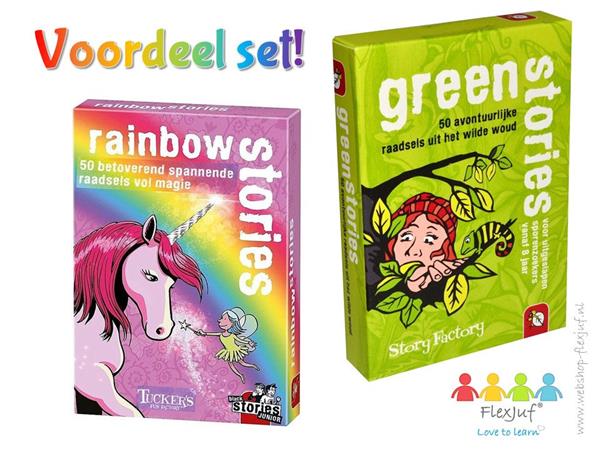 Dit is een voordeelset van 2 spellen: Rainbow Stories en Forest Stories (voorheen green stories). Rainbow Stories: